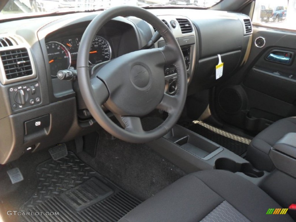 The 2012 Chevrolet Colorado offers a no-frills interior that is highly functional and easy to maintain. Seating is comfortable for front-seat passengers, with good thigh support from the firm cushions. However, the Extended Cabs tiny jump seats are not fit for human occupancy over any great length of time, and while the Crew Cab offers true 2-person seating, rear-seat legroom is tight. Base models have an overabundance of gray plastic and gray cloth seats, neither of which is very inviting. Higher-level models can be equipped with cloth or leather cashmere colored seating and feature a bit more dash and door-panel embellishment to brighten the interior.