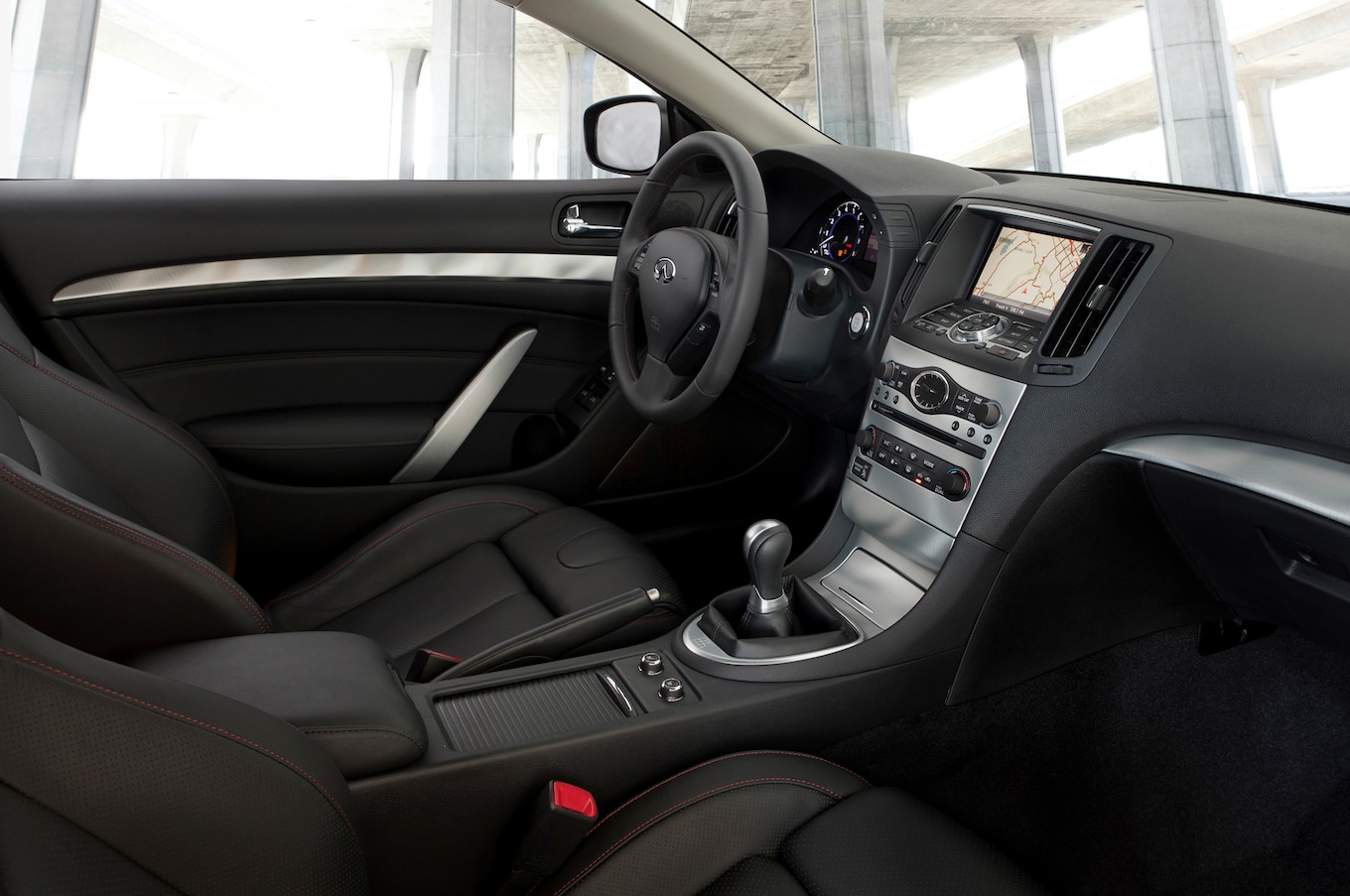 The 2013 Infiniti G37's interior is exceptional both in design and in the quality of materials used. The luxurious cabin is marked by supple leather-trimmed seating surfaces and elegant, soft-sheen "Silk Obi" aluminum trim. The form-fitting standard driver's seat features 8-way power adjustability, while Sport 6MT models offer increased support and 12-way adjustability (adds bolsters and thigh extensions). Complementing the G37's contemporary architecture is a sharp 7-inch, full-color display. Outward visibility is commendable on the G37 sedan, but the coupe and convertible sacrifice a little for their racy C-pillar contours.