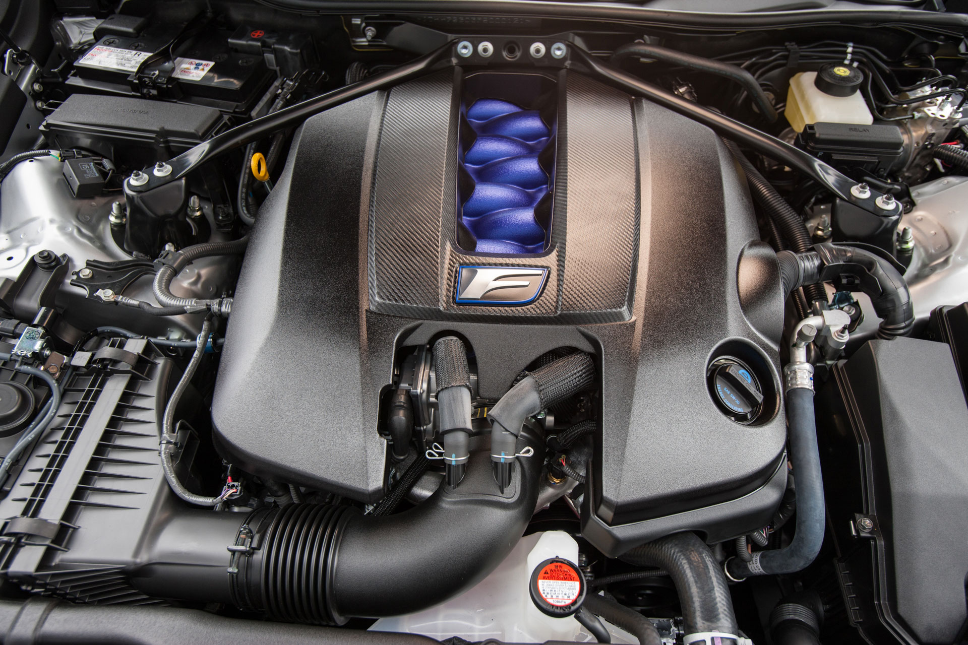 Enhancements for Lexus' 2-door performance coupe include navigation system that bundles a rearview camera, the Lexus Enform App suite with services such as Yelp, Pandora and stock prices, and a mouse-like touch pad to control it all; heated/ventilated front seats; leather interior; heated steering wheel; and moonroof. The Mark Levinson premium audio system (see Favorite Features) sounds excellent and is an easy recommendation for music lovers. Advanced safety features include blind-spot monitoring and a pre-collision system that can automatically brake the car. RC F models can add to their prowess with a torque-vectoring rear differential and carbon-fiber roof and rear spoiler.