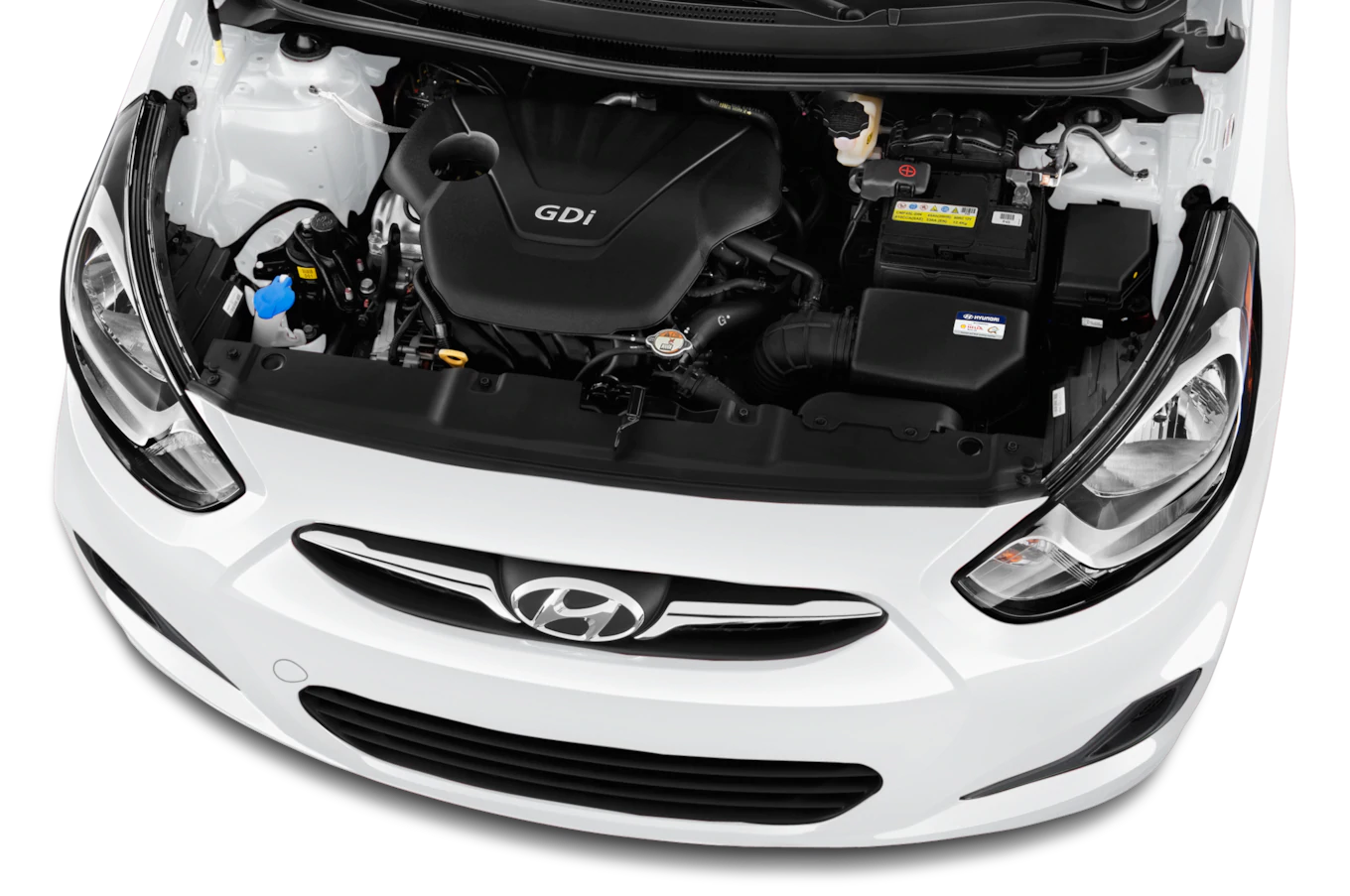 All 2016 Hyundai Accent models use a 1.6-liter 4-cylinder engine with gasoline direct injection (GDI) that translates to satisfying throttle response. Offering 137 horsepower and up to 38 mpg, this little engine puts out a good blend of power and efficiency. All Accent models are front-wheel drive and use a standard 6-speed manual transmission or the more recommendable and popular 6-speed automatic transmission with Hyundai's Shiftronic manual control.1.6-liter inline-4137 horsepower @ 6,300 rpm123 lb-ft of torque @ 4,850 rpmEPA city/highway fuel economy: 27/38 mpg (manual), 26/37 mpg (automatic)