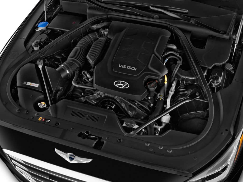 The 2016 Hyundai Genesis 3.8 comes with a 3.8-liter V6 rated at 311 hp and 293 pound-feet of torque. The only transmission is an eight-speed automatic. The V6-powered Genesis comes standard with rear-wheel drive, but can be fitted with optional all-wheel drive.