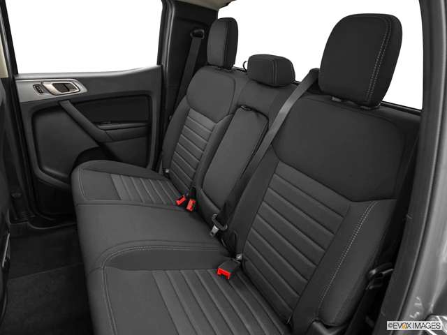 The 2020 Ford Ranger midsize pickup has seating for either four or five passengers. SuperCab models have comically tight rear quarters with a pair of small, upright seats and not a whole lot of legroom. If you plan to regularly accommodate friends and family in back, you’re better off with a Ranger SuperCrew model, which has total seating for five, more rear legroom, and a matching set of doors for easy entry and exit. SuperCrew models also have a rear armrest, a nice touch for passenger comfort or for separating siblings. If you want front seats with more than just 4-way adjustability and cloth material, you’ll have to step up to the top-end Ranger Lariat model, which grants leather and 8-way-power front seats, or add that extra comfort as an option on the XLT model. A manual sliding rear window is also offered, depending on trim and package.
