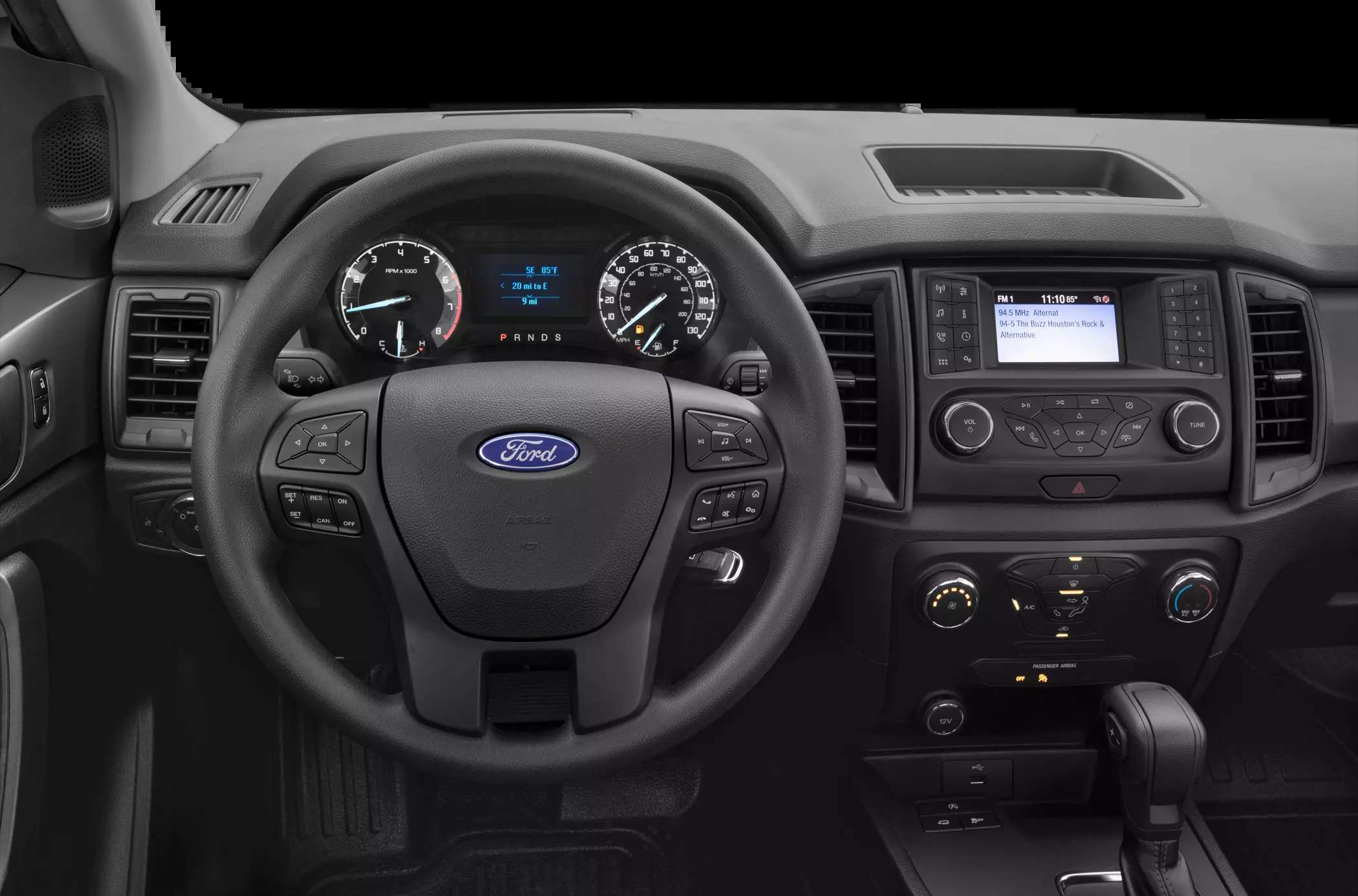 Ford’s Ranger midsize pickup truck comes in three trims: XL, XLT and Lariat. In its most basic form, the Ranger includes a turbocharged engine and 10-speed automatic transmission, power windows, 16-inch wheels, and automatic headlights. The base audio system is just a 4-speaker AM/FM unit with 3.5-inch screen, but at least there are inputs for USB and auxiliary cable. Commendably, the Ranger does come standard with a pre-collision warning system that can detect cars and pedestrians in front of the vehicle and ultimately brake on its own to prevent a collision. We recommend at least stepping up to a mid-trim Ranger XLT model, which adds the Co-Pilot360 safety system with blind-spot monitoring, lane-keeping assist, and trailer-tow monitoring. It also adds front and rear parking sensors, 17-inch wheels, Ford's Sync 3 infotainment system with 8-inch touch-screen display and Apple CarPlay and Android Auto smartphone capability, and a 4G Wi-Fi modem.