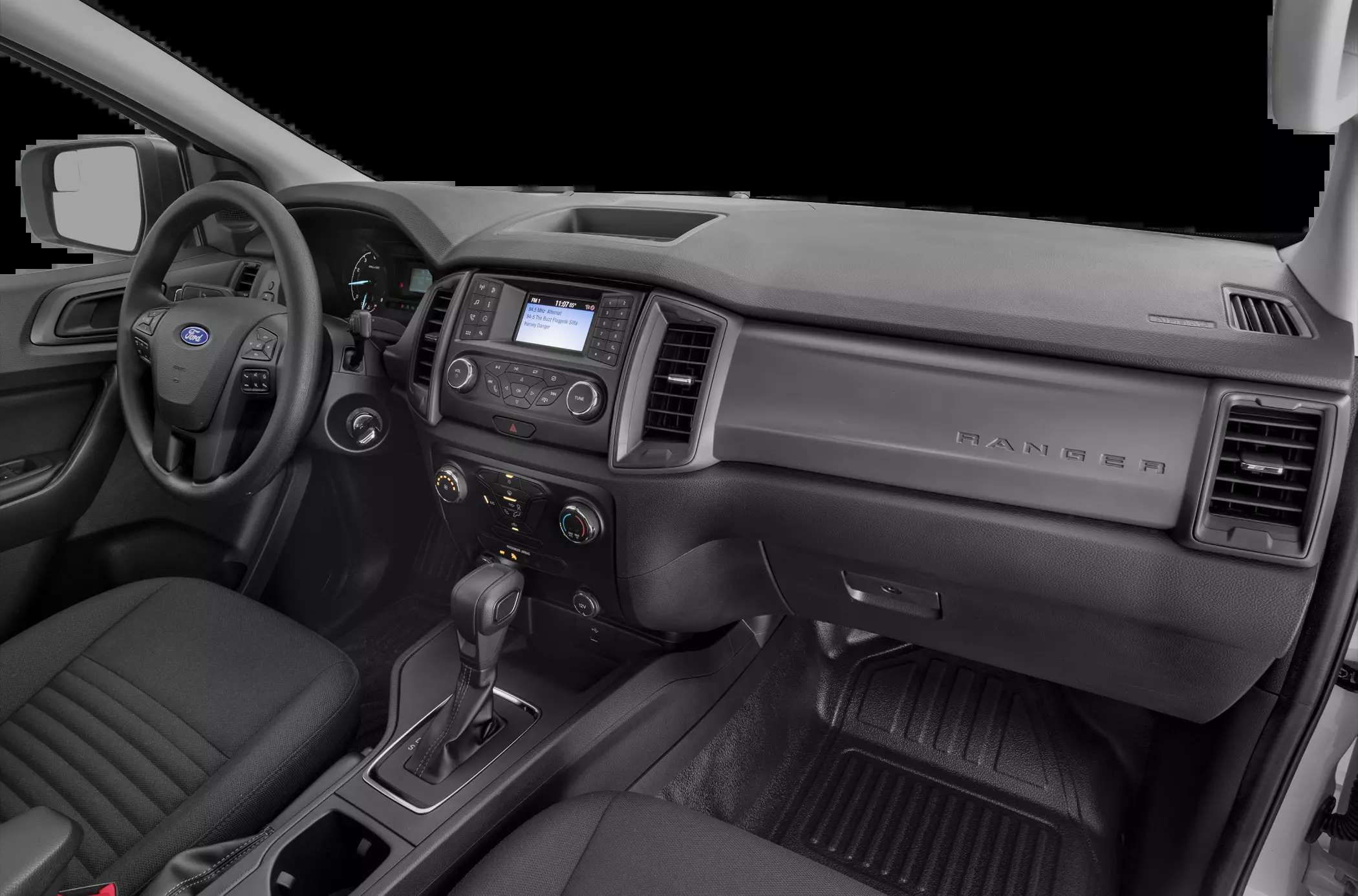| Floor Mats | Colour-coordinated carpet with nubuck edge and ranger logo carpeted floor mats |