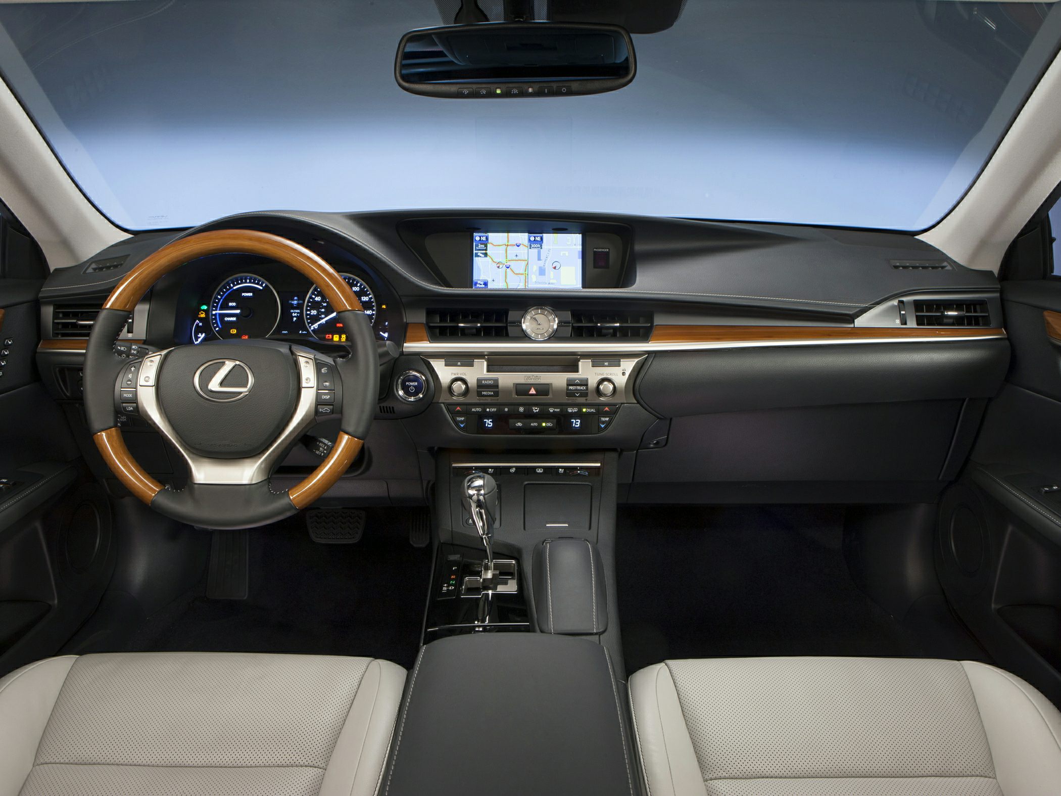 даже базовая модель Lexus ES 2014 года оснащена кнопочным пуском / стопом, двухзонным автоматическим климат-контролем с воздушным фильтром и датчиком смога, люком на крыше, зеркалом заднего вида с автоматическим затемнением, устройством открывания гаражных ворот homelink и аудиосистема с 8 динамиками am / fm / 6-cd / спутниковым радио с входами usb и ipod. сиденья теперь отделаны материалом lexus nuluxe, а также кожей по желанию. Что касается безопасности, в 2014 es есть 10 подушек безопасности, резервный монитор и служба, которая предлагает экстренную помощь одним нажатием кнопки, а также автоматическое уведомление о столкновении Lexus в случае аварии.