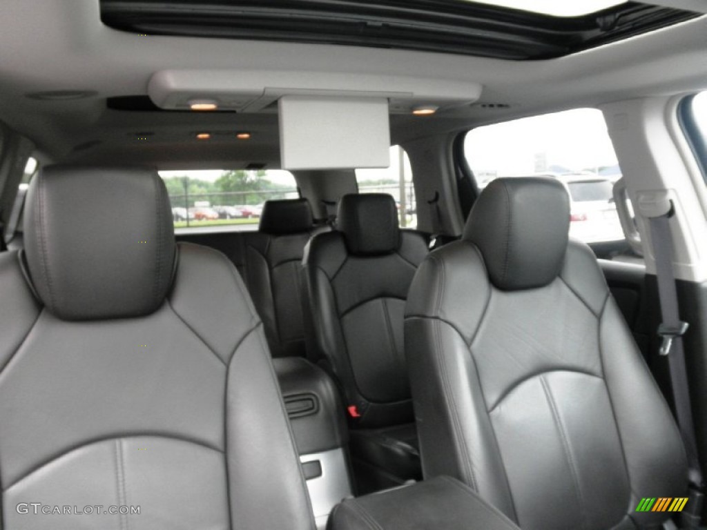 2012 acadia, geniş kabinin içinde, krom süslemelerle vurgulanan iki tonlu bir renk düzeni ile çekici bir düzene sahiptir (denali ayrıca ahşap damarlı vurgular içerir). ne yazık ki bu döşeme güneşi sürücü ve ön koltuktaki yolcunun gözlerine yansıtmaya meyilli. diğer iki dezavantajı, ses ve klima kontrolleri için küçük ve belirsiz düğmeler ve diğer rakip araçlardan daha fazla tehlikeye atılan dış görünürlük içerir. ancak genel olarak, yapı kalitesi güçlüdür ve akadiyalarda kullanılan malzemeler, chevy traverse kardeşindekilerden biraz daha iyidir.