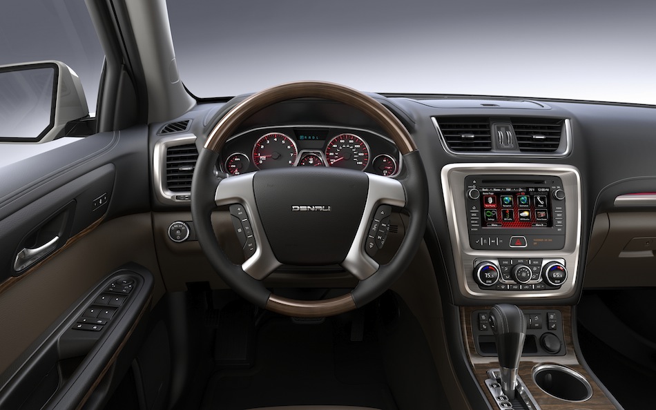 2012 gmc acadia crossover suv, standart gm onstar sistemi olarak bir yıllık ücretsiz hizmet, altı hoparlör ve mp3 özellikli am / fm / cd stereo, uydu radyo, 7 yolcu koltuğu, çift egzoz içeren iyi donanımlı bir araçtır. krom uçlar, arka spoyler, kayar ikinci sıra koltuklar, sis lambaları ve 18 inç jantlar. hükümetin gerektirdiği güvenlik özellikleri arasında devrilme azaltma özellikli stabilitrak elektronik denge kontrolü, kilitlenmeyi önleyici frenler (abs), lastik basıncı izleme sistemi (tpms) ve altı hava yastığı bulunur. denali döşeme maun ahşap ekler, ısıtmalı ve soğutmalı ön koltuklar, çift gökyüzü manzarası sunroof, delikli deri oturma yüzeyleri ve 20 inç jantlar ekler.